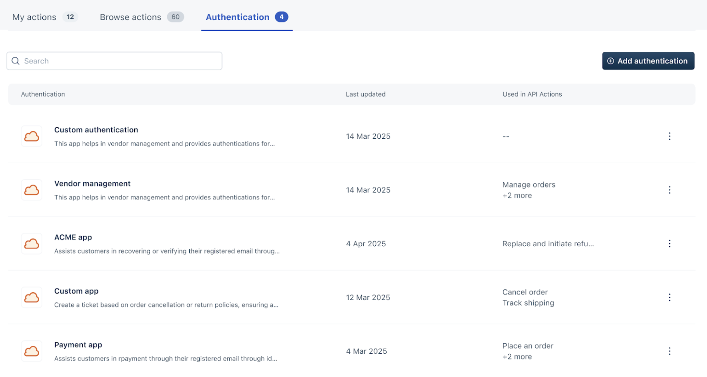 Note: You can add only 1 Authentication per Action.