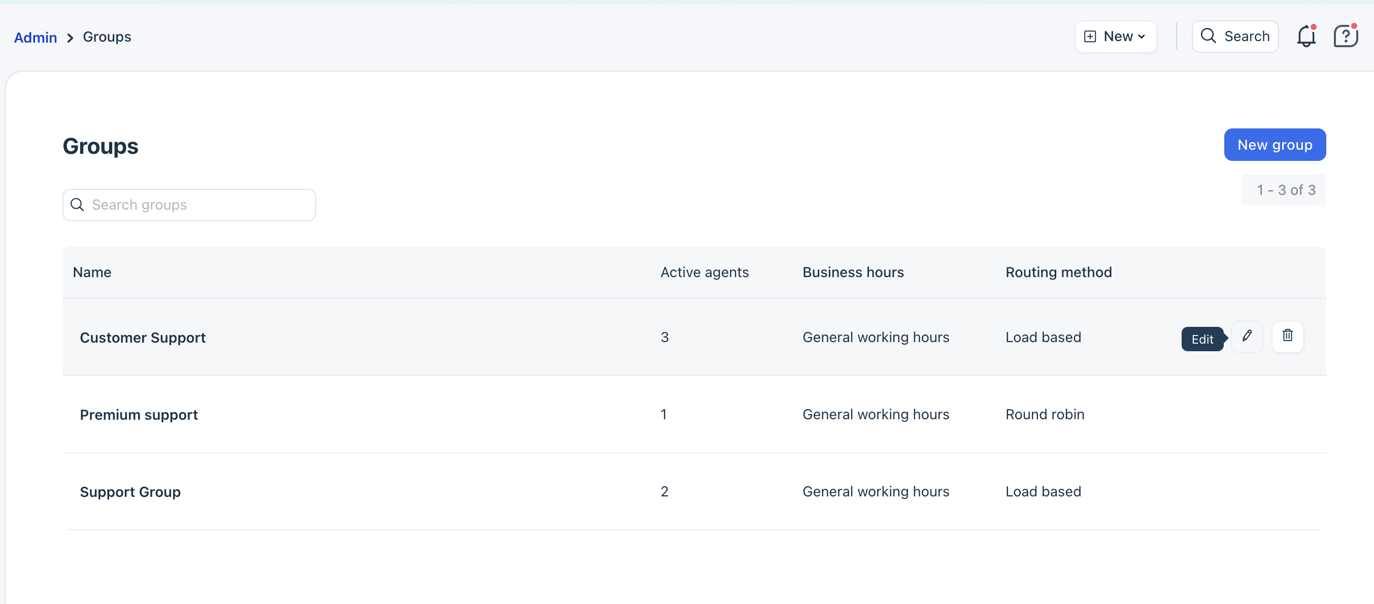 - Go to Admin >Team > Groups, and click Edit next to the group you want to modify