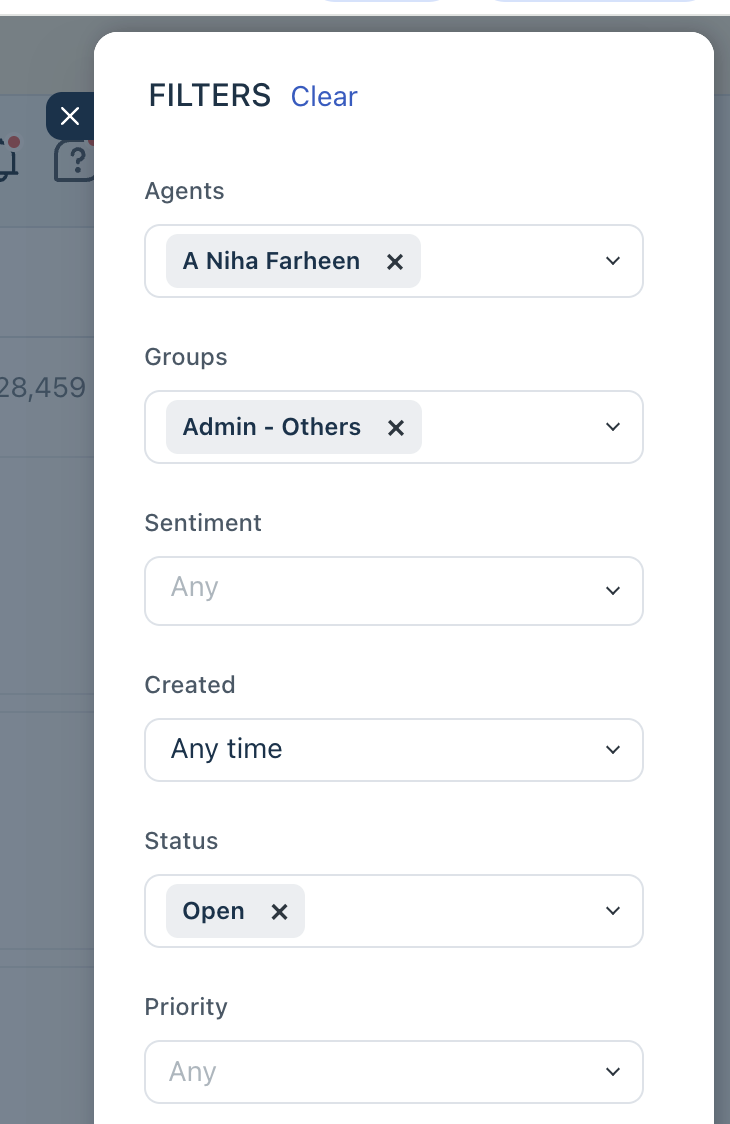 When searching for tickets, you can use the Filter button to fine-tune your results with the exhaustive ticket property list, including custom ticket fields. For example, you can look for ‘console repair’ tickets received in the last 10 days, assigned to a specific Group, and given the Urgent priority.