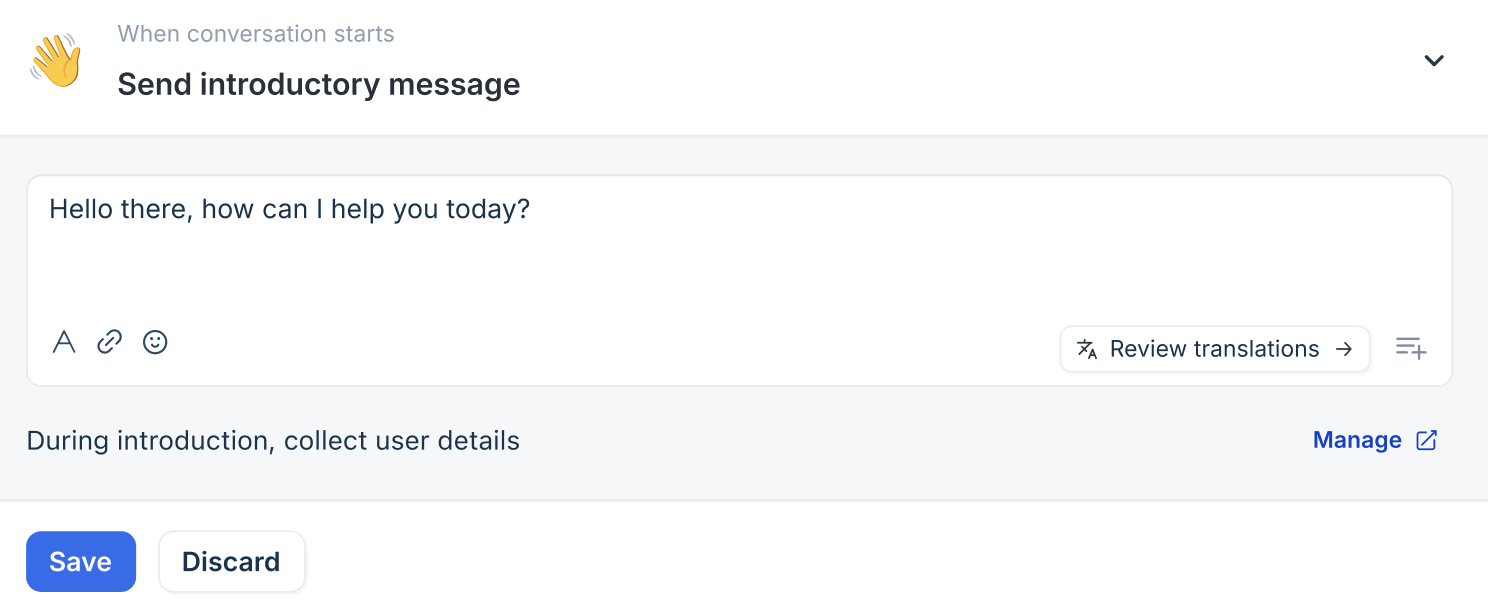 The Introductory message is the customer's first interaction with your AI Agent. Personalizing this message can set the right tone and increase engagement.