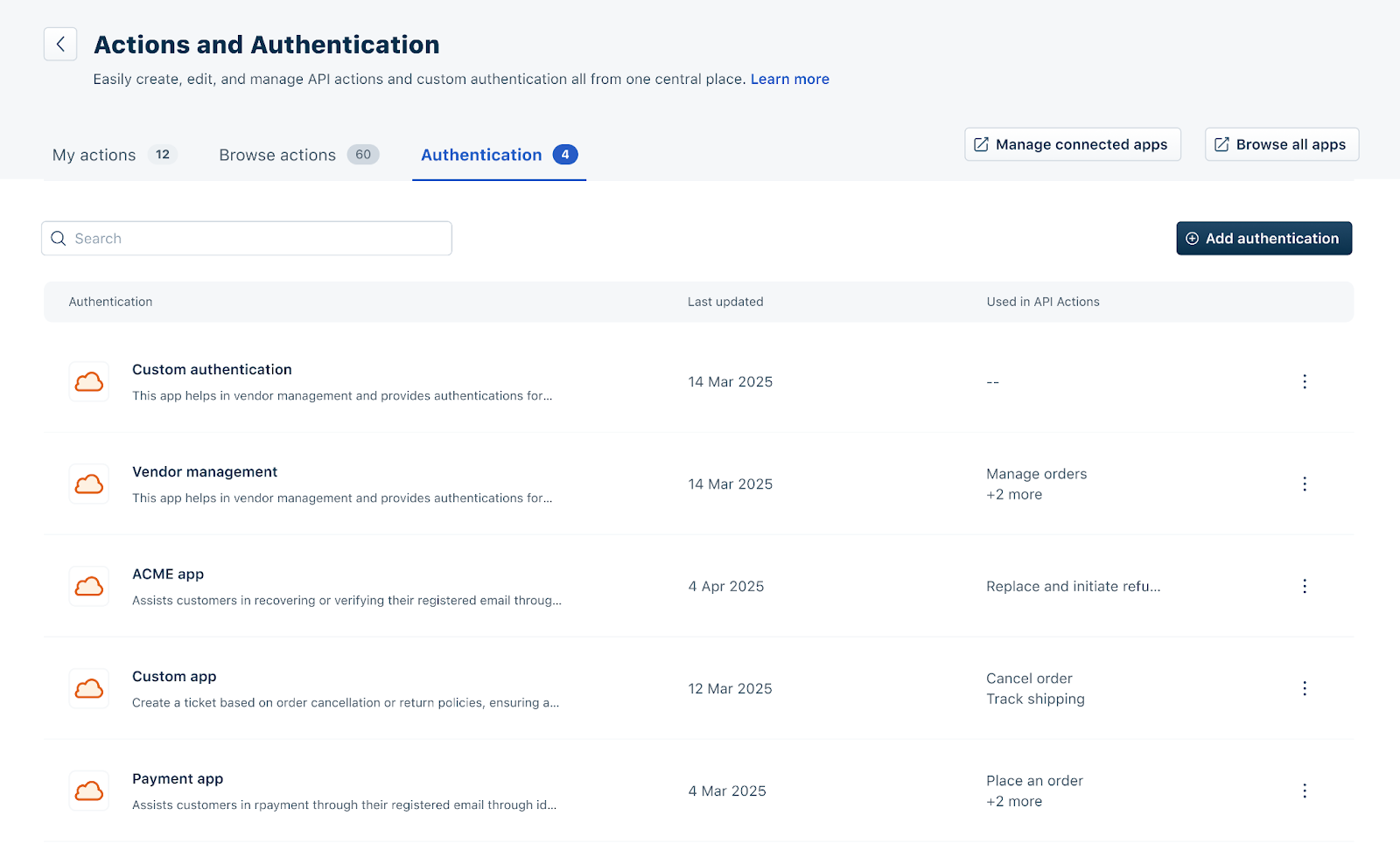 Reusability – You can create one authentication setup and reuse it across multiple Actions within the same system.