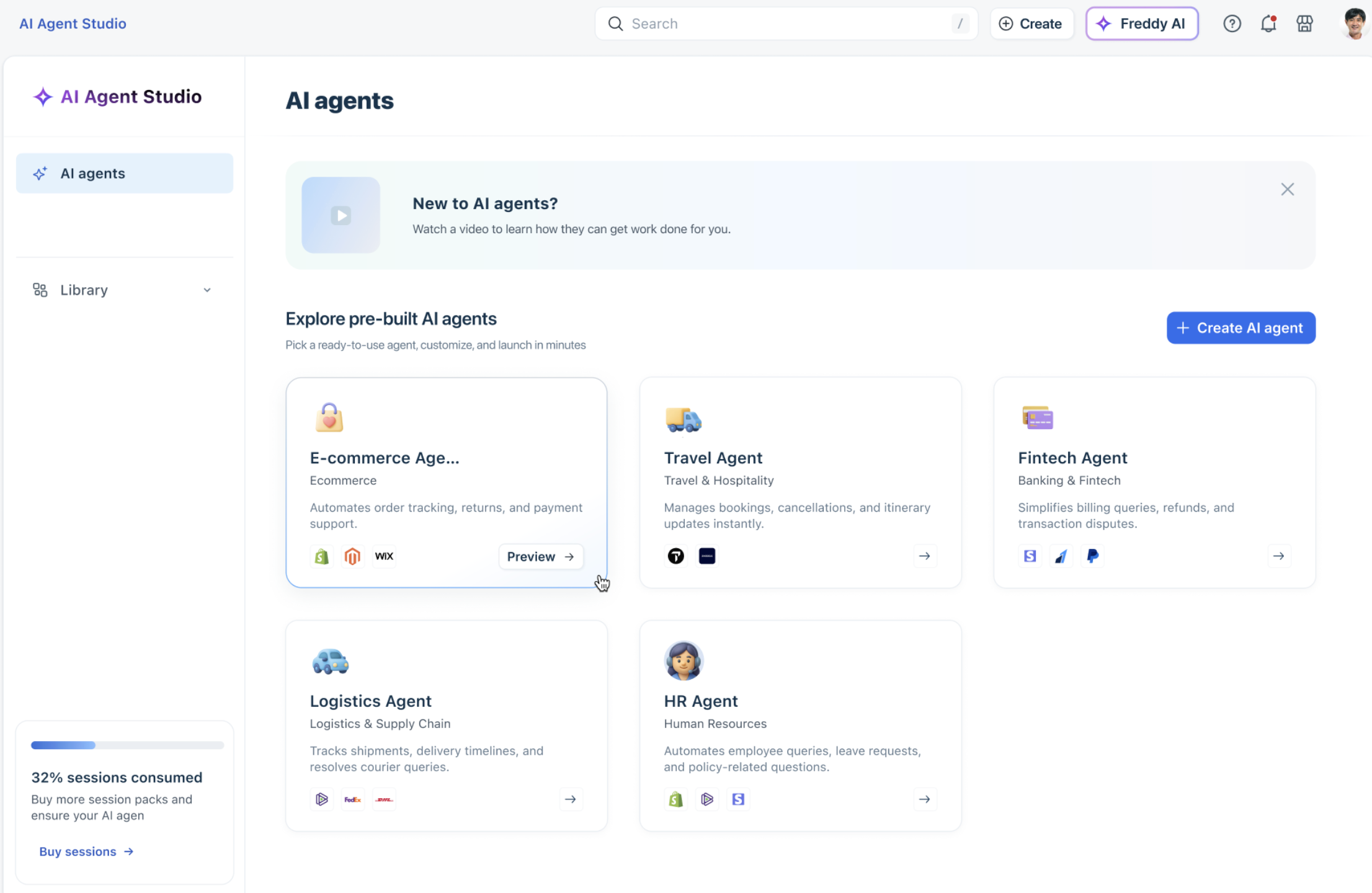 AI Agent Studio is your central workspace for creating, managing, and deploying conversational experiences powered by Freddy AI.