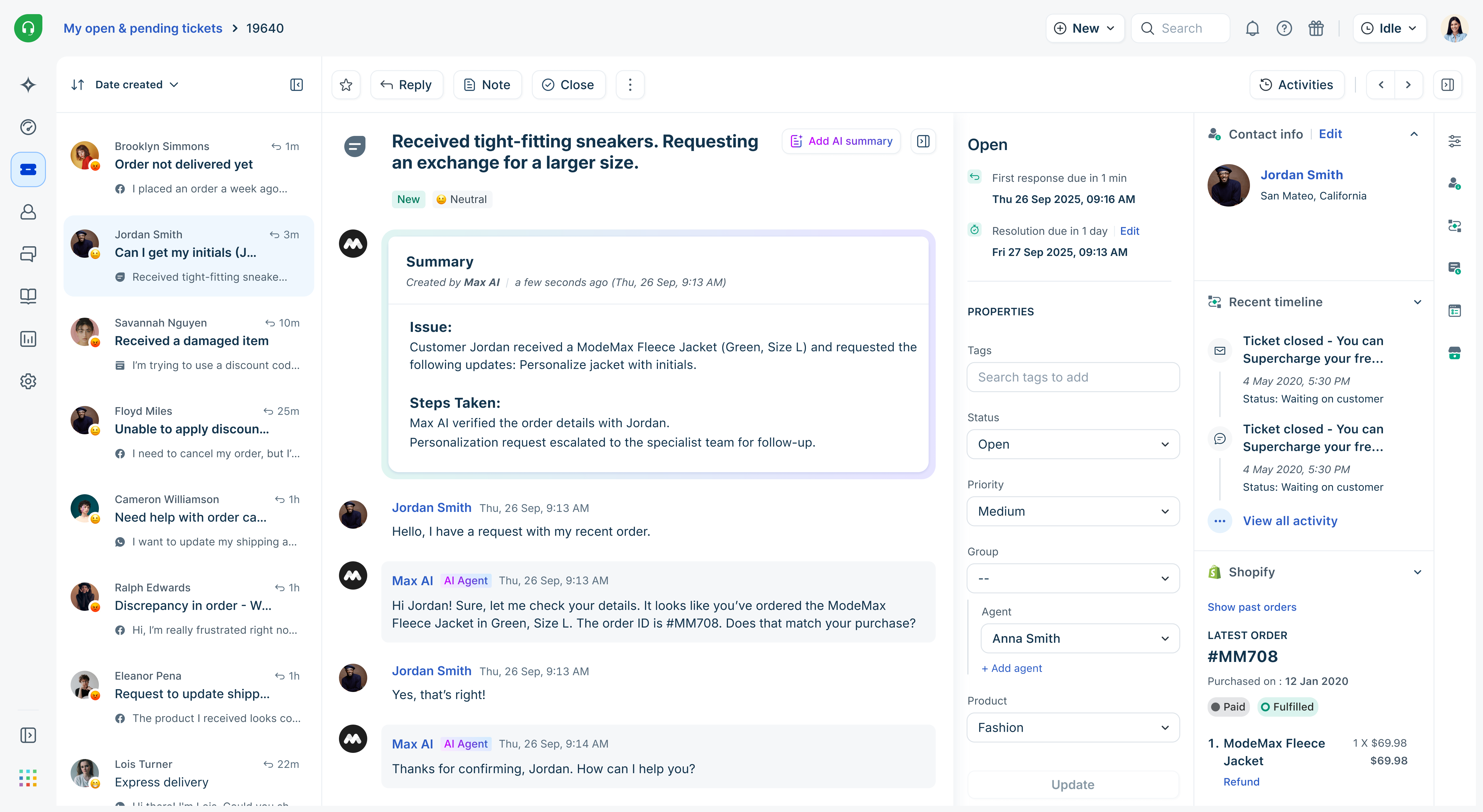 Freddy AI Copilot helps every human agent work smarter by offering context-aware assistance right inside the ticket.
