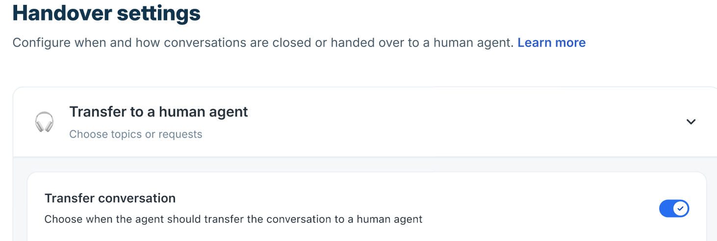 Enable this setting to automatically route conversations to a human agent when the AI Agent should no longer continue handling the interaction.